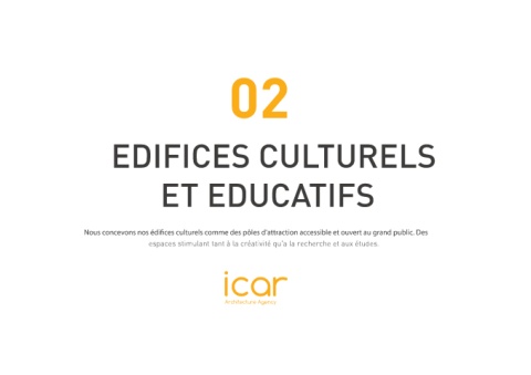 02 EDIFICES CULTURELS ET EDUCATIFS espaces stimulant tant à la créativité qu'a la recherche et aux études.